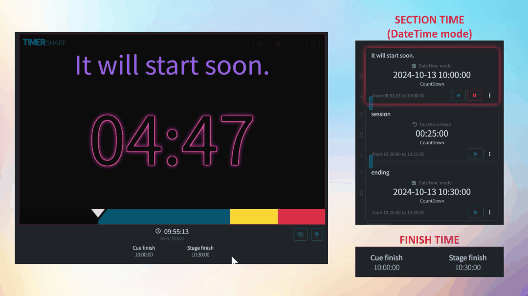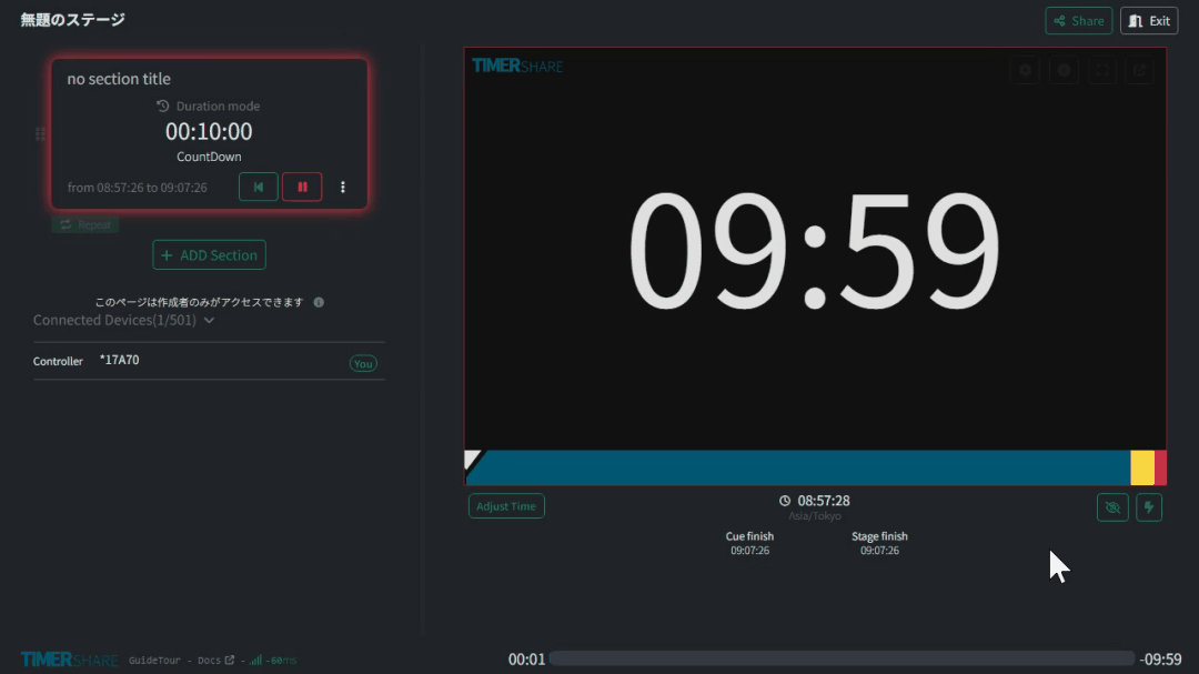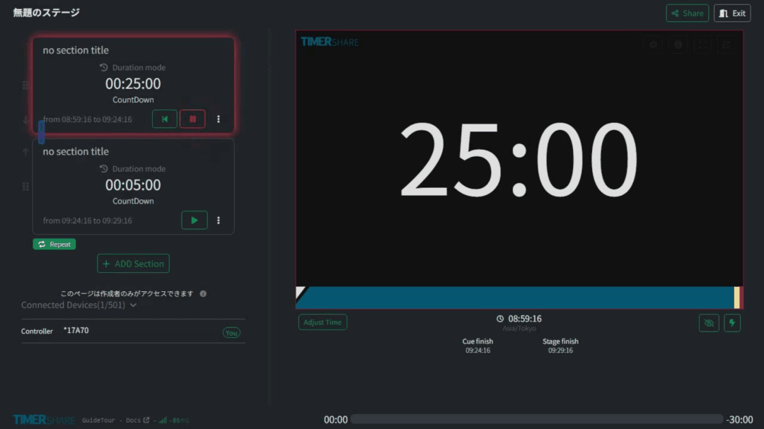 You can control everything on this screen, including the stage, sections, and timer.