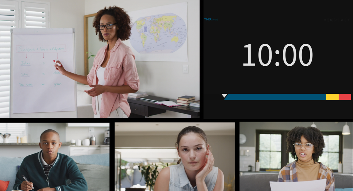 Depending on the teaching environment, TIMERshare [**integrates with major online meeting tools**](https://docs.timer-share.com/en/integration/online-meeting-tools) like Zoom and Microsoft Teams through [OBS Studio and similar tools](https://docs.timer-share.com/en/integration/live-streaming),  allowing timers and progress bars to be displayed directly on the teacher's screen.\